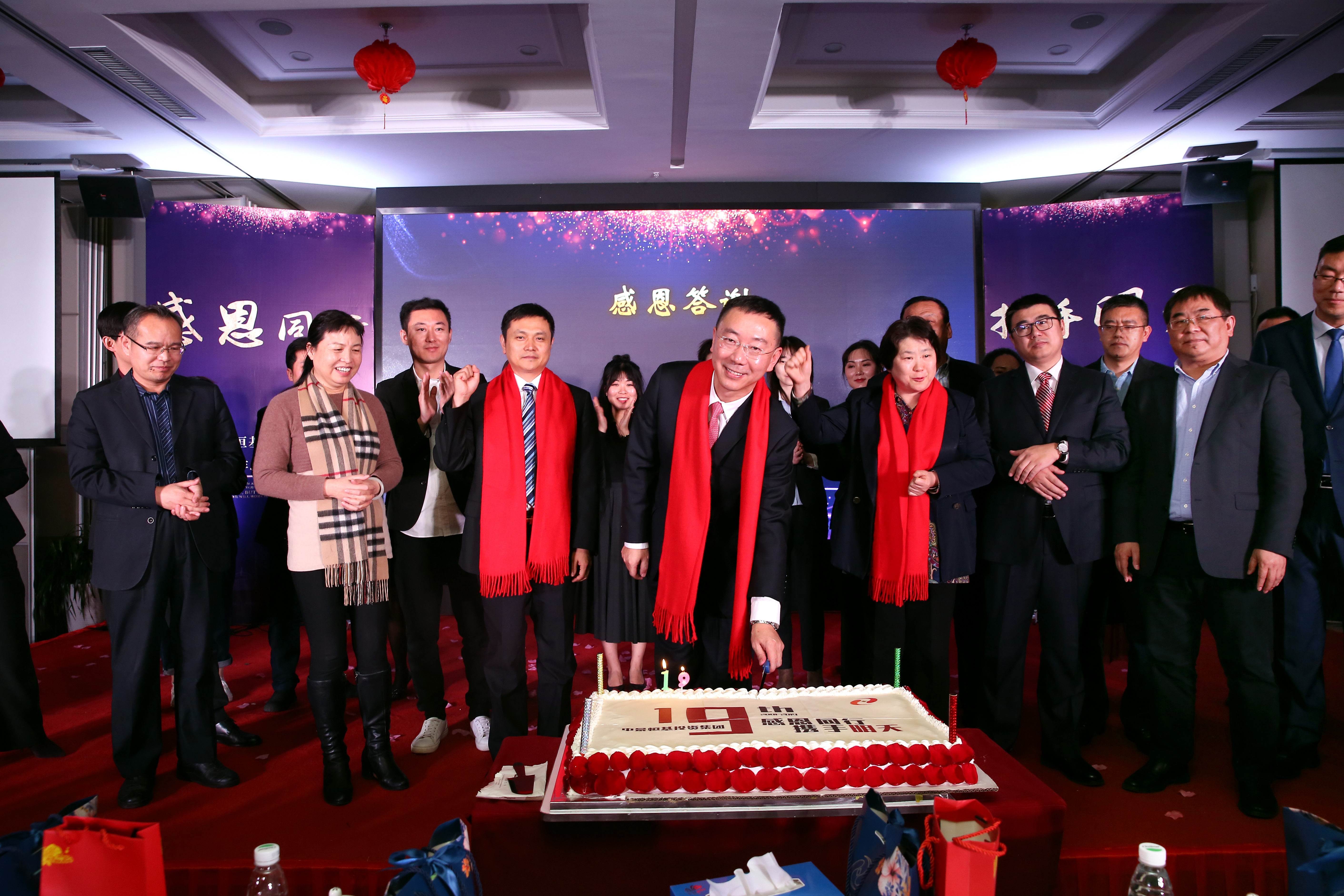 集团董事长兼首席执行官肖厚忠、集团董事兼高级总裁丰学琴、集团董事兼高级总裁时亮、集团监事会主席肖厚志、集团副总裁邓千、集团副总裁常治、集团总裁助理肖传涛、集团总裁助理赵根芝、集团总裁助理王玲、集团总裁助理姜春彦、中国民族建筑研究会常务副秘书长杨东生以及中景股份公司、中景装饰公司、中景科技公司、宣正建筑公司、工程管理公司、商业管理公司、城市运营研究院、民族建筑研究会的全体员工和视频联线的中景物联网公司、凤翔铭居公司和中景农科公司共计200余人齐聚一堂,共享盛宴!