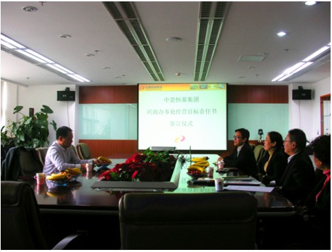 最后,集团副总裁桓总代表集团与河南办事处负责人蔡总正式签署经营目标责任协议书。河南办事处的设立完成,预示着中景恒基集团将以中原为核心,进入国内业务市场横向拓宽、纵向延伸的又一新的发展时期。让我们拭目以待,中景恒基的未来必将更为辉煌。