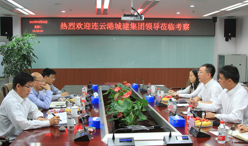2015年5月5日,连云港市城建集团董事长周文军,城投集团总经理戚文忠、综合办主任高二飞莅临PA视讯走访调研,集团董事长、首席执行官肖厚忠热情接待了周董事长一行,并举行合作交流座谈会,集团高级总裁张定开、副总裁桓朝晖、副总裁蔡菊参加会谈。