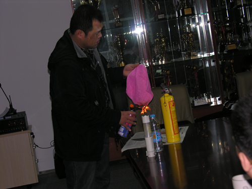 封主任现场演示消防灭火器械的使用方法