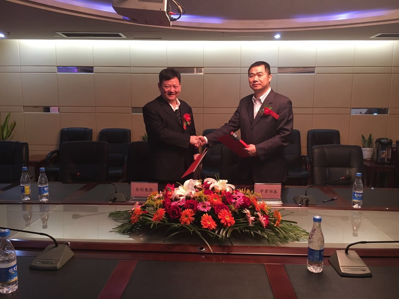 下午,中景资管公司与湖南共创实业集团有限公司在共创集团总部会议室举行战略合作签约仪式,双方正式签署合作协议。中景资管公司将会在资产、债务、金融等方面与共创实业集团有限公司进行全面合作,在充分发挥双方资源优势作用的基础上,为共创实业集团有限公司疏通企业脉络,进一步扩大企业效益和规模,切实达到双方合作共赢结果。