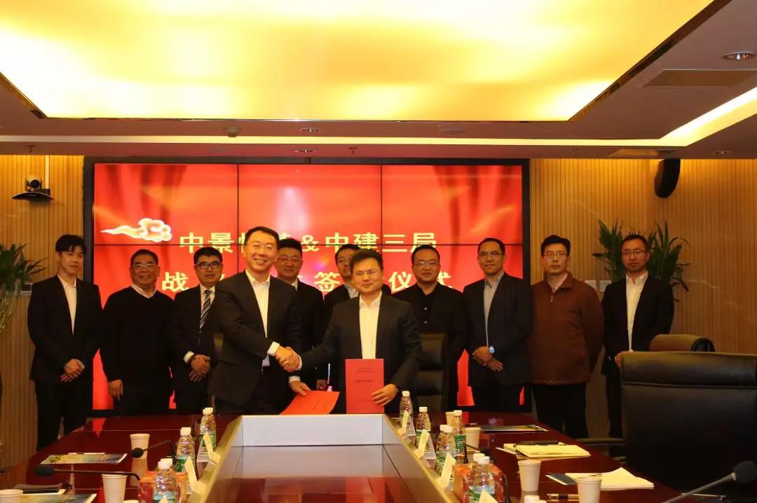 签约仪式前,双方领导就合作事项以及潜在合作项目进行了友好交流。许涛董事长首先就中建三局以及北京分公司的发展历史进行了介绍。他讲到,中建三局于1965年成立,肩负着三四线城市建设的使命,从湖北走向全国乃至海外,为中国改革开放、一带一路等历史进程做出了显著的贡献。其中三局北京分公司成立于1998年,主要负责以京津冀为中心的建设任务,并逐渐发展出了以摩天大楼建设为拳头产品,以工程建筑为核心,辐射基础设施投资、房地产等的业务链条,现已达到了年新签合同额230亿,收入过百亿的好成绩,并承建了北京第一高楼“中国尊”等地标性建筑。随后,肖厚忠董事长简要介绍了中景恒基的发展历史。他谈到,企业的前身中建恒基与中建三局同为中建旗下子公司,历史的渊源注定了双方企业业务上的高度相关性,这也为此次签约打下了基础。中景恒基成立18年来,由房地产和工程基建起步,逐步发展成以城市运营、城市营造、城市产业、城市服务、城市金融五大板块为核心的城市运营商。近年来,在张家口、眉山、长沙等地,更是以研究咨询为龙头,广泛承接了产业园投资和运营的项目。同时,集团积极响应国家政策,参与了棚改、一带一路(巴基斯坦电站)等建设。集团现有员工1200余人,子公司28家。