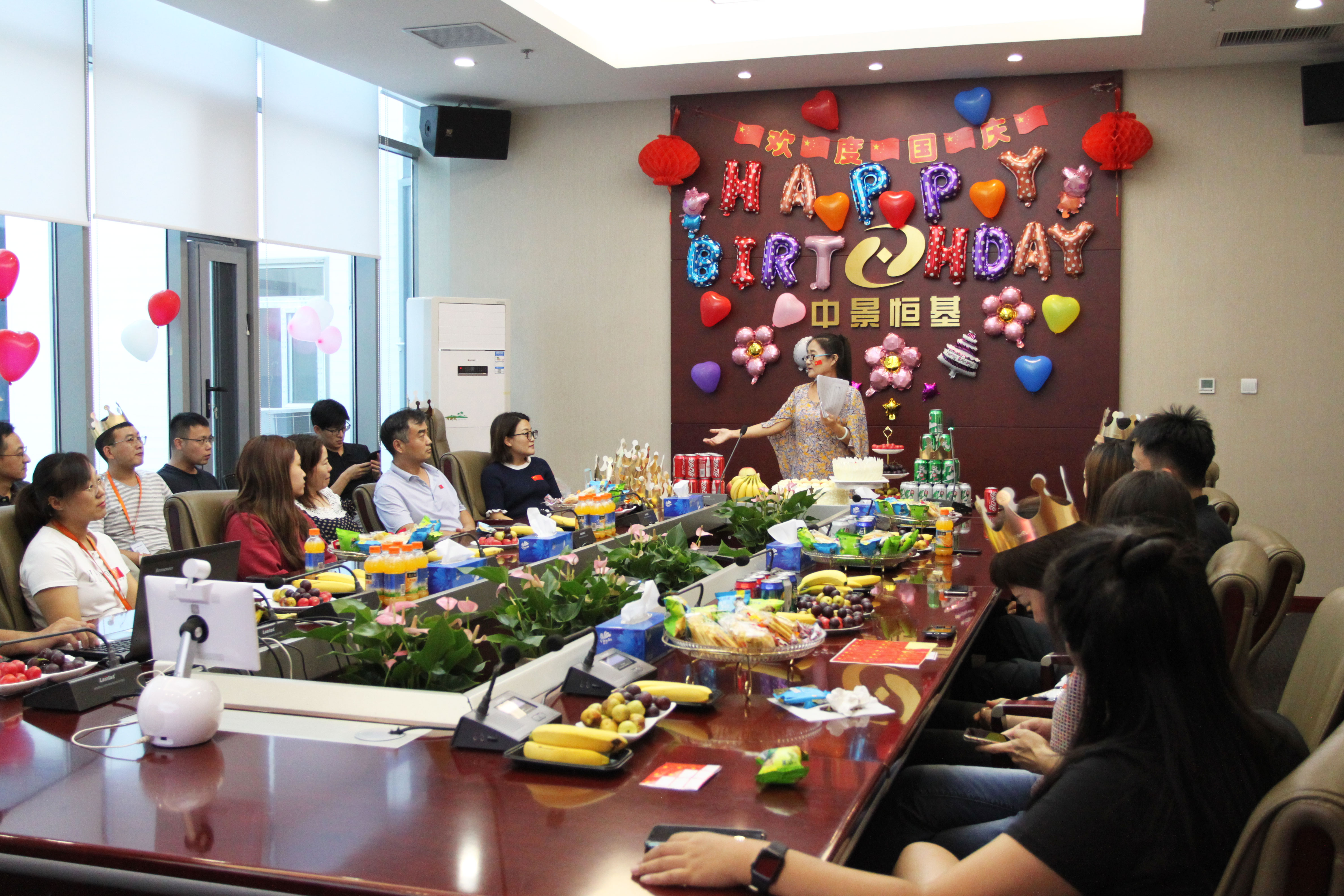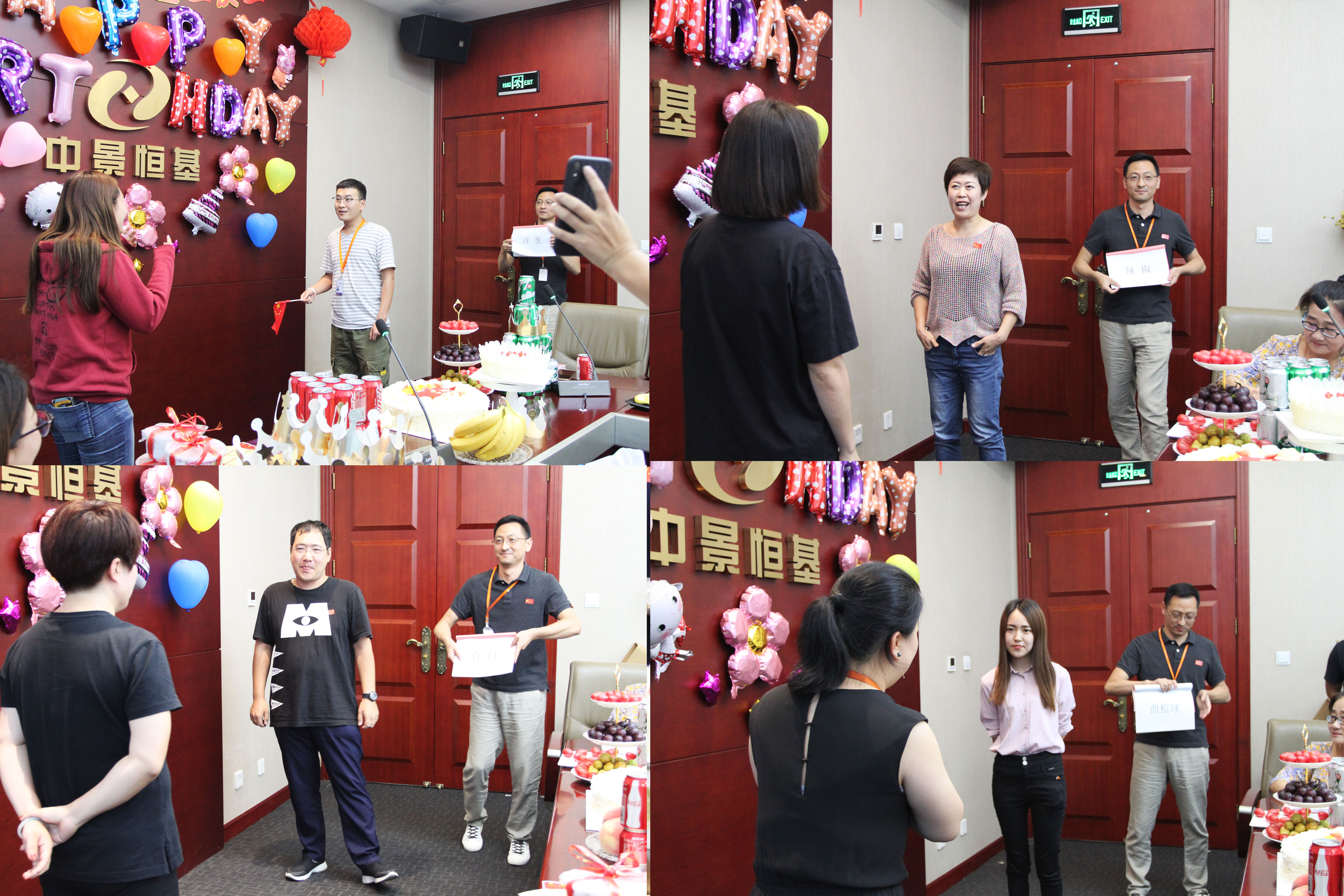 此次生日会分为寿星(新人)介绍、游戏互动、幸福传递和为祖国庆生四部分。各位同事在欢声笑语中增进情谊,在游戏中培养默契,在生日烛光的传递中互赠祝福,短暂的生日会提升了各部门各团队的合作精神,游戏参与者们更是收获了精美的礼物。