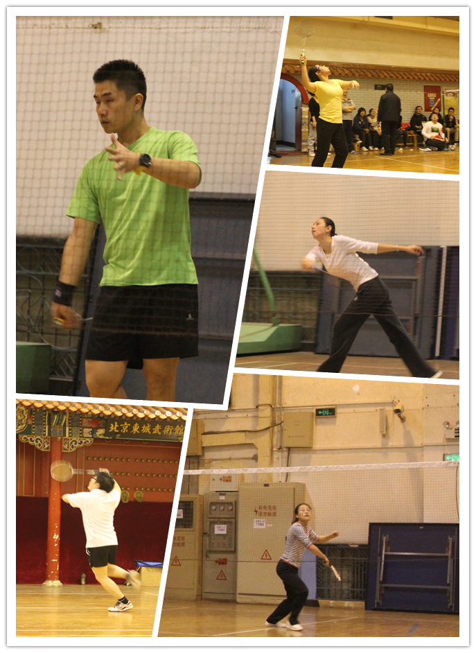 16日上午首先开始进行羽毛球比赛。10时整,随着裁判员的一声哨响,本届竞赛拉开战幕。“好球!”“扣杀!”赛场上,参赛选手们脚步灵活、矫健,漂亮的腾空杀球,飞身救险频频上演,更时有比分相持不下,双方打出多拍精彩对攻让场下观众连连忘情欢呼。最终,经过紧张的角逐,集团公司穆怀亮技高一筹,荣获羽毛球男子单打冠军,亚军和季军分别为中天仁德公司张伟、科技公司董彬。女子单打前三甲依次为中国民族建筑研究会姜春彦、管理公司姜瑜、集团公司李娟娟。